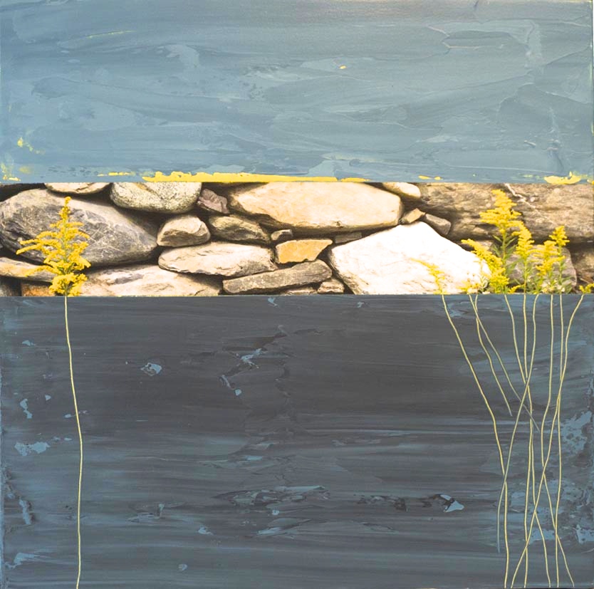 Roches_Fleurs #4, Techniques mixtes sur toile, 16×16 po, 2014