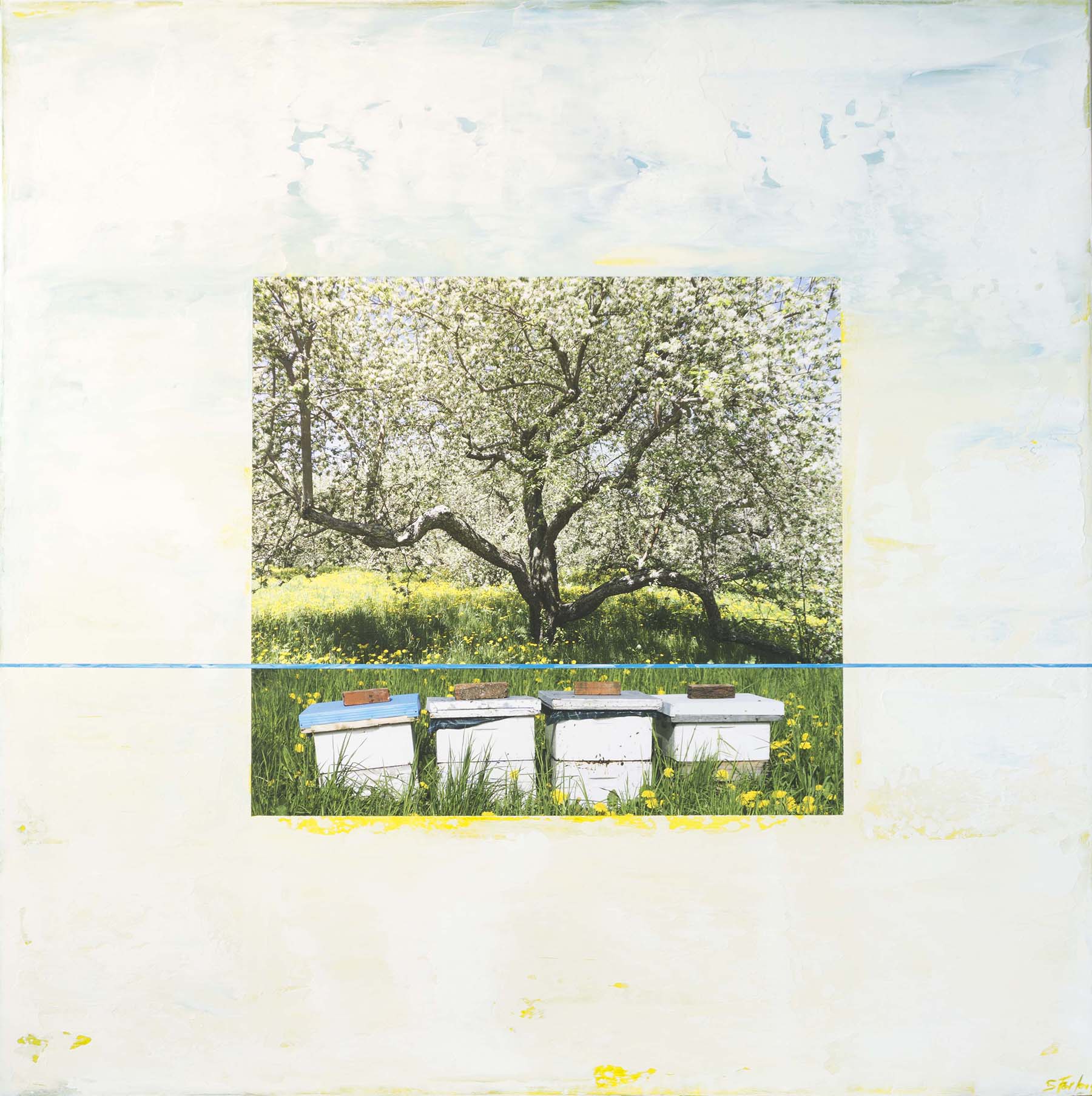 Ruches-Pommier-Fleurs_2015_ Impression numérique de qualité archives et acrylique sur toile _30 x 30po