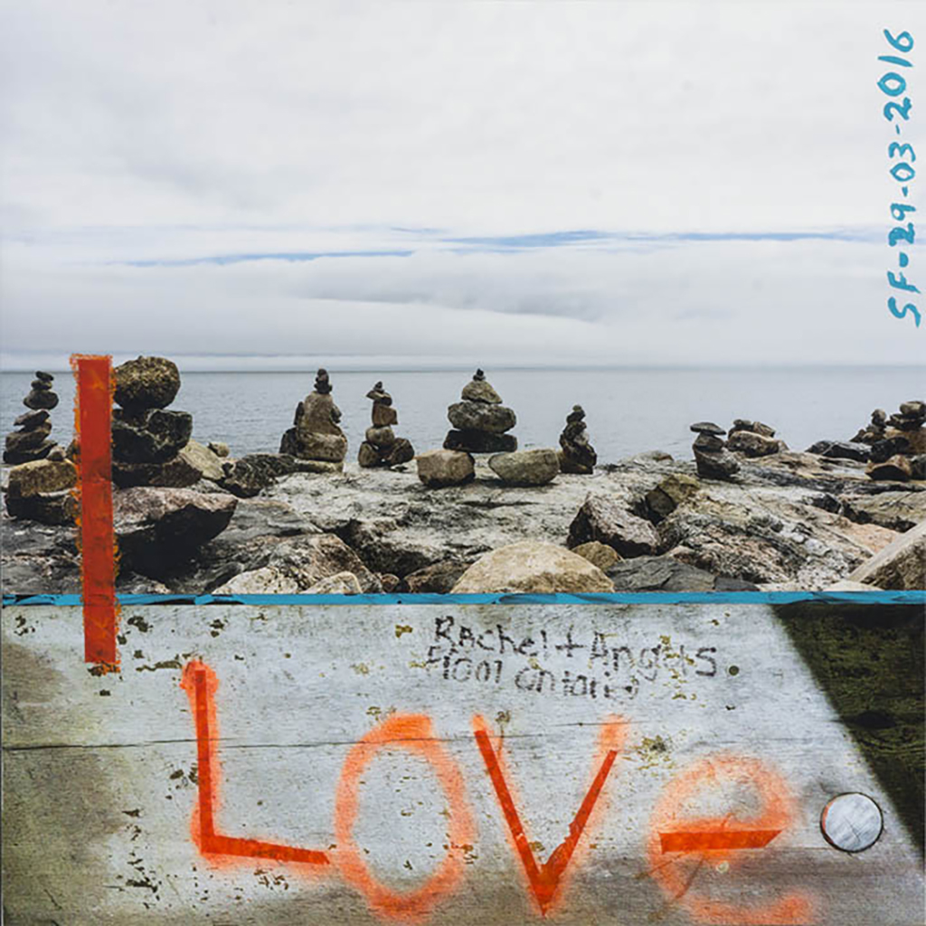 I Love-Inukshuk_Impression numérique et acrylique, sur papier coton marouflé sur bois_20po X 20 po