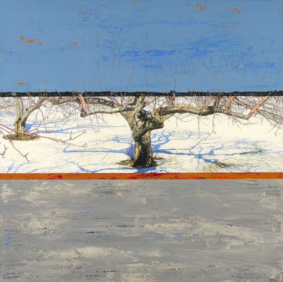 Pommier-Bleu_Impression numérique et acrylique sur toile_36x36po