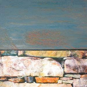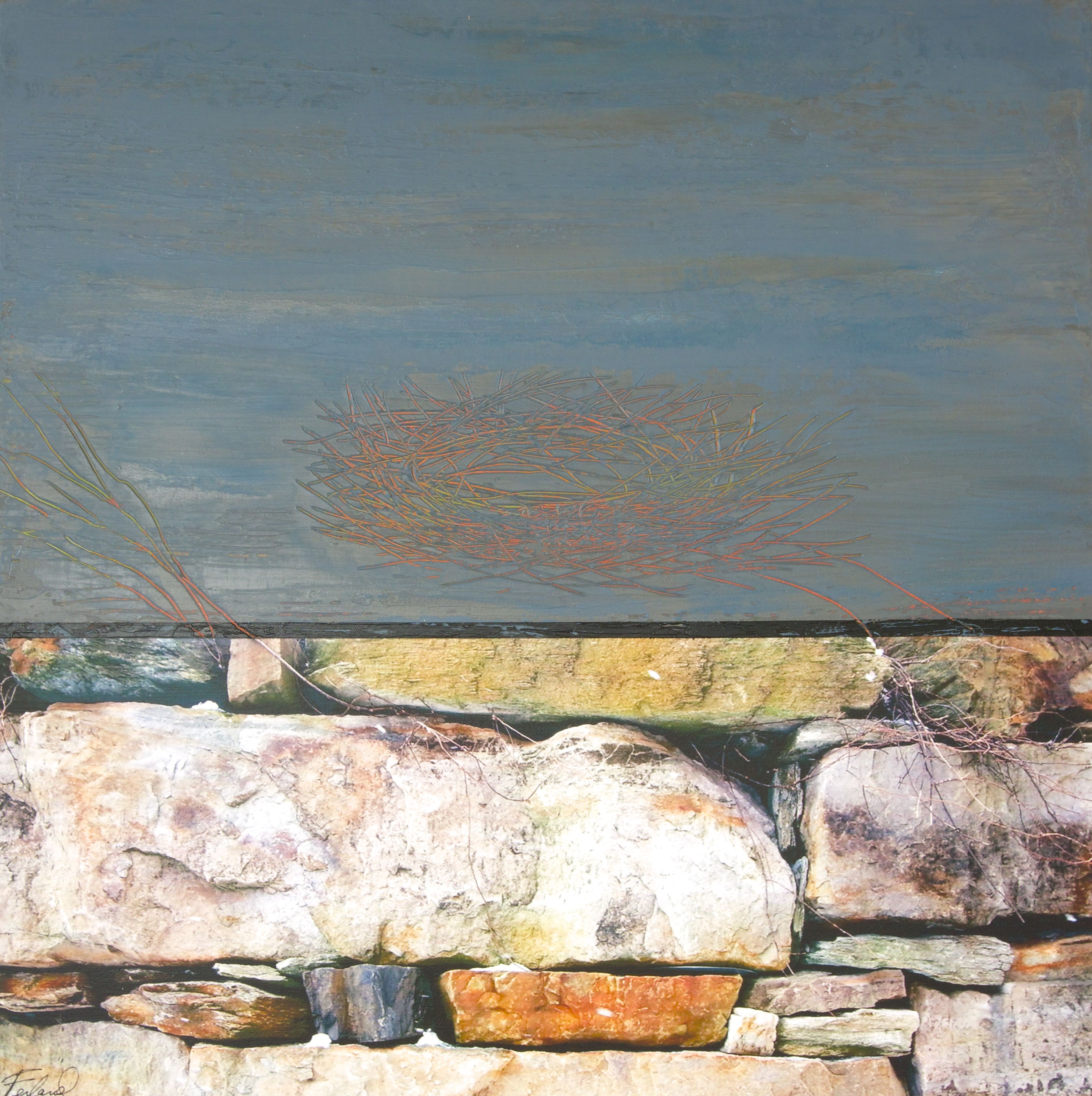 Roches_Nid Bleu, Techniques mixtes sur toile, 24x24po, 2014 (vendu)