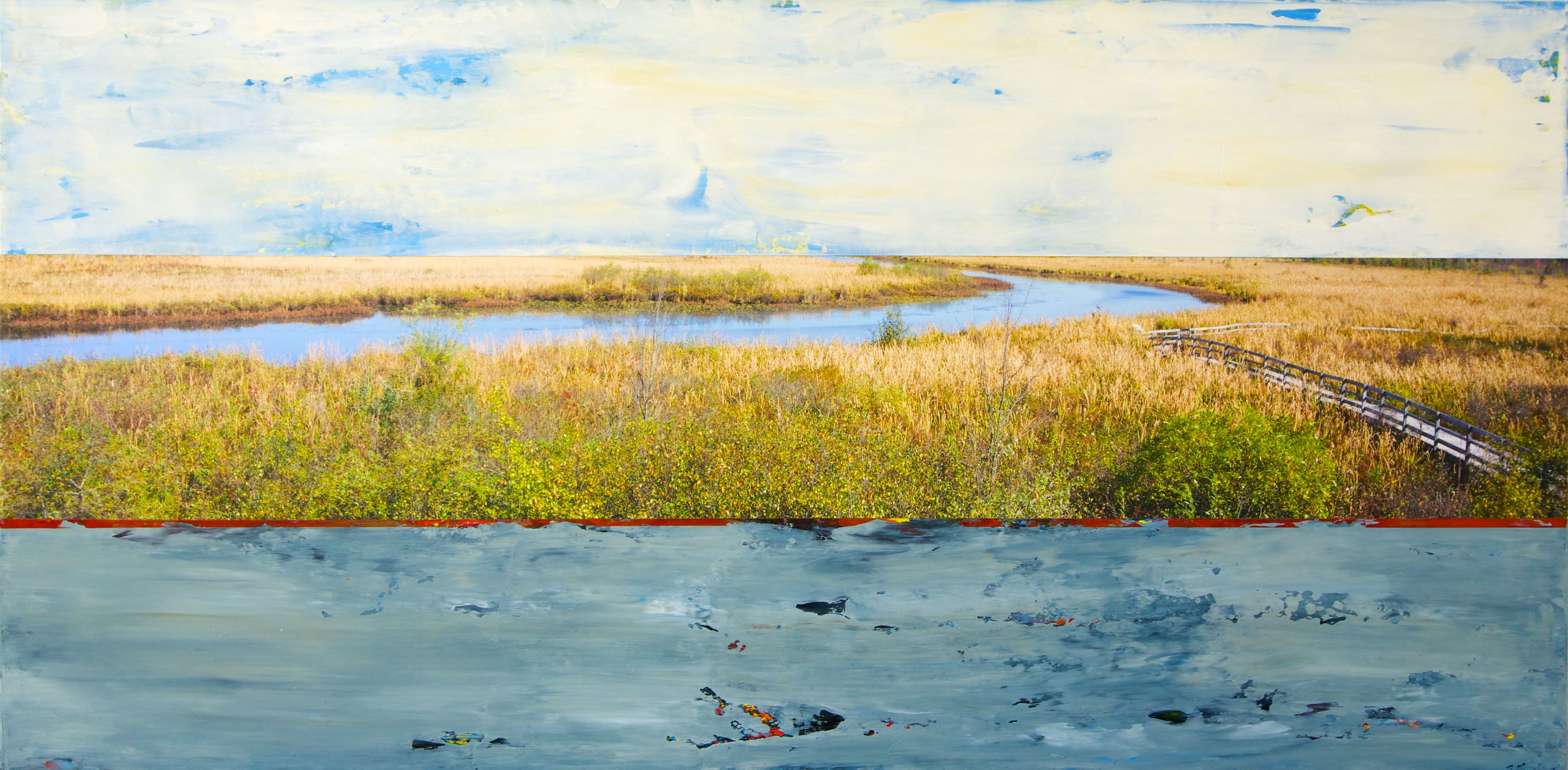 Le Marais #2, Techniques mixtes sur toile, 24x48po, 2014 (Collection Loto-Québec)
