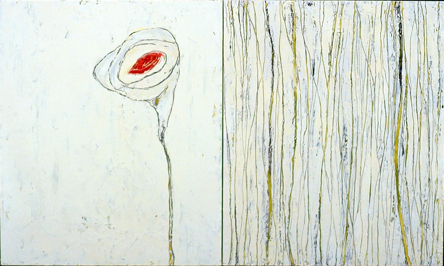 Fleur d’eau, encaustique et huile sur toile, diptyque (36X30 po) X2