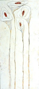 Fleurs d’eau, encaustique et huile sur toile, 68 X 30po