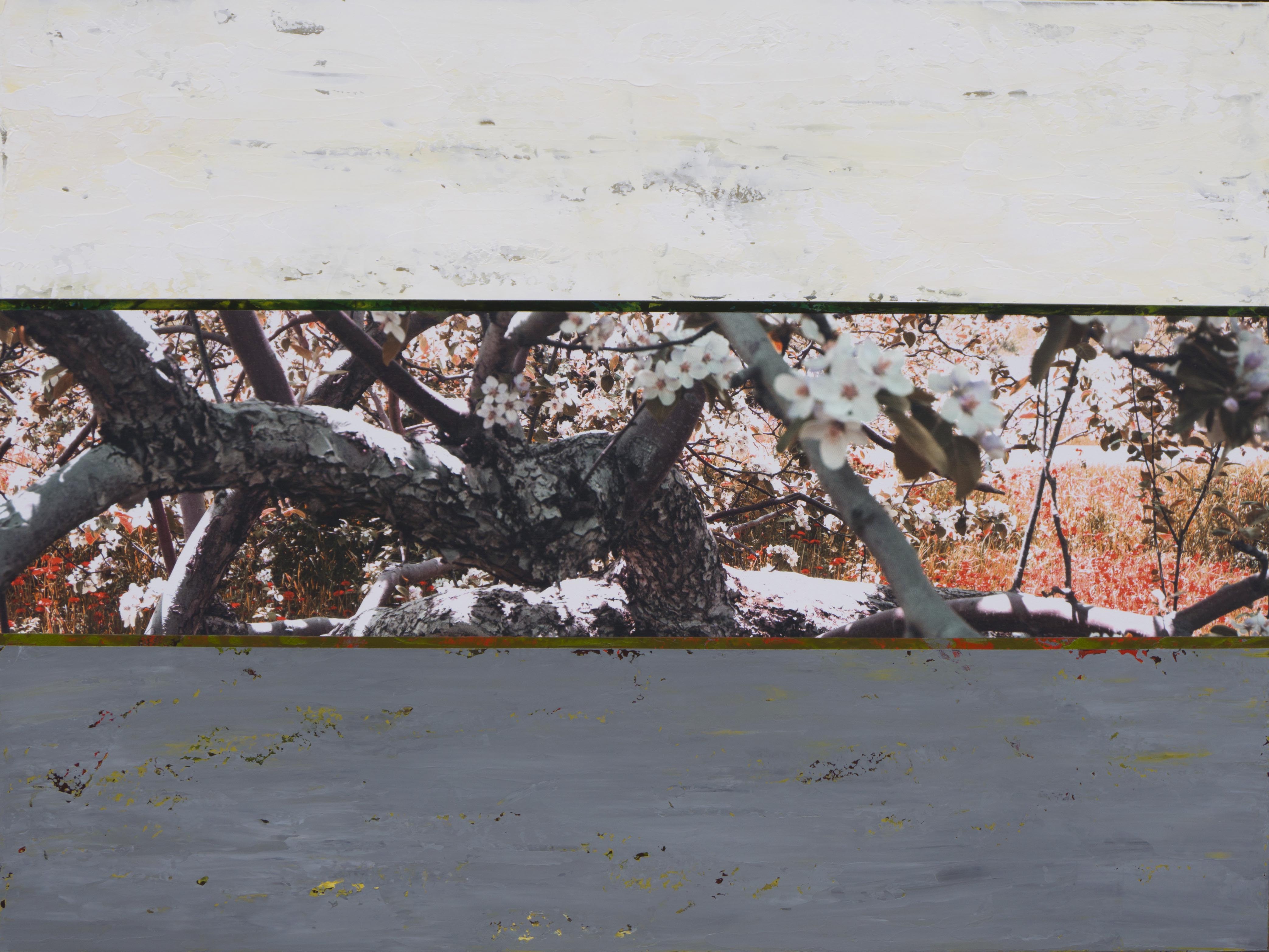 Pommier_Floraison-36x48po, techniques mixtes sur toile, 2014