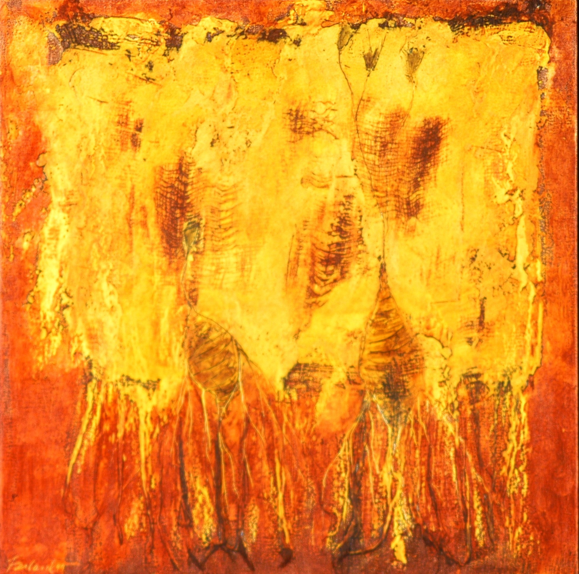 Racines # 6, encaustique et huile sur toile, 20 X 20 po