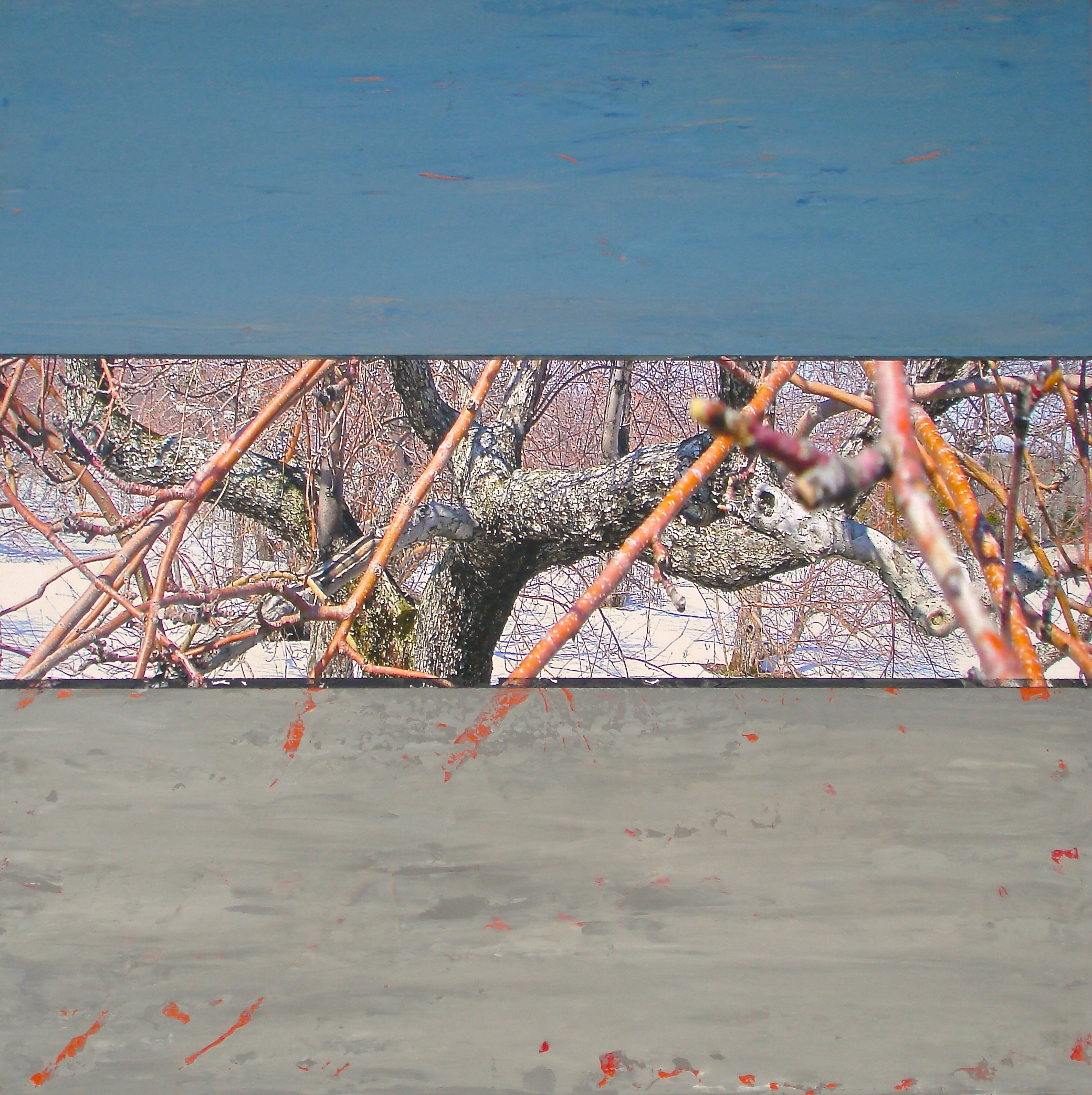 Pommier_Rameaux, techniques mixtes sur toile, 36 x 36po, 2014